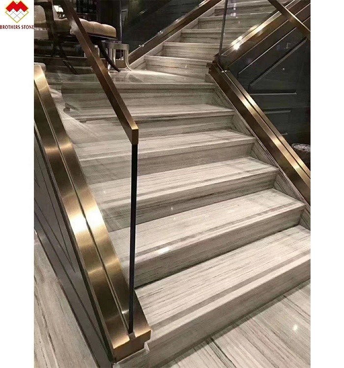 内部装飾のための白色大理石の木製の階段 白い灰色静脈の大理石の床と階段 防滑テープ設計